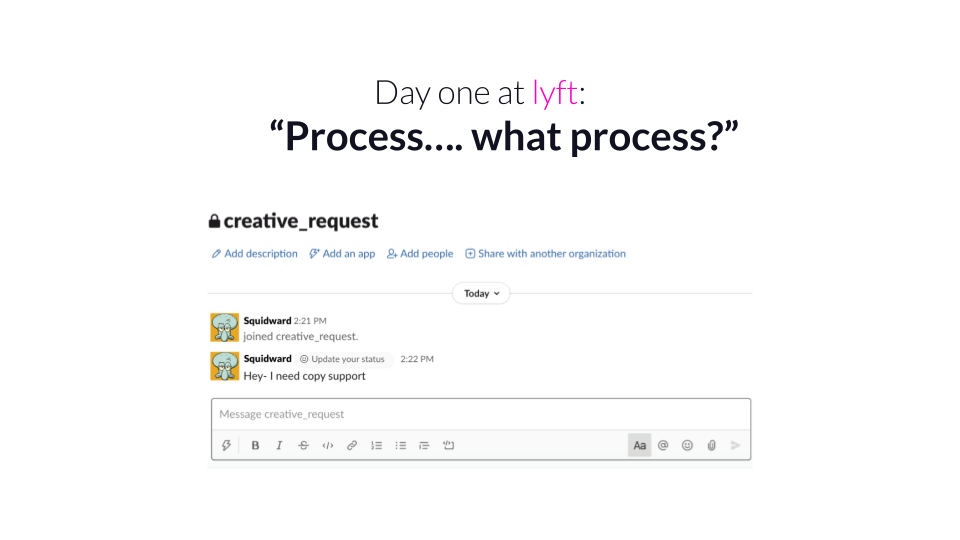 Name a process that I'm most proud of spearheading and implementing, which significantly impacted my team's productivity. The following slides walk through the process that I built and implemented at Lyft, which followed me to many other roles.